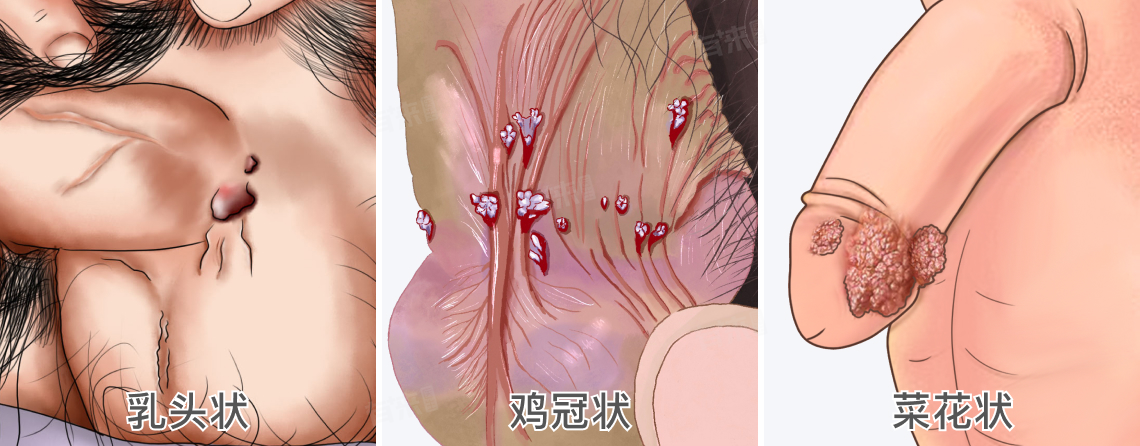 可引起尖锐湿疣,疣体可能出现在包皮、龟头、冠状沟、系带、阴茎、尿道口、肛周和阴囊等部位,疣体可能表现为乳头状、鸡冠状、菜花状赘生物,颜色从粉红色到灰白色、皮色、污灰色不等。这些疣体可能会引起瘙痒、出血,如果继发感染还可能产生恶臭。
