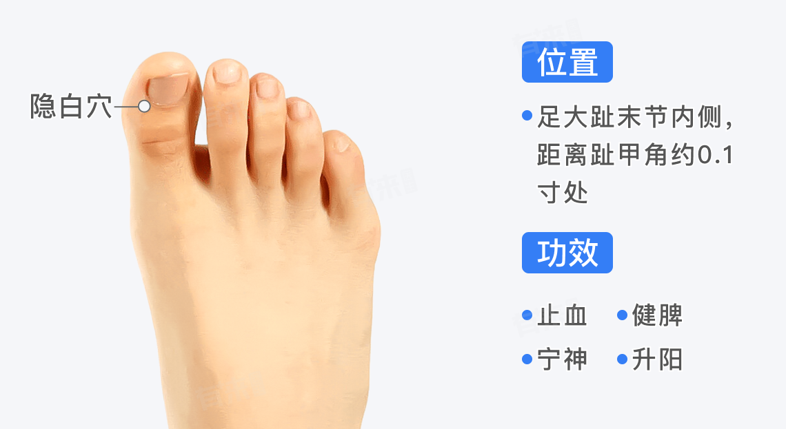1、止血:隐白穴是中医理论中著名的止血大穴,对于多种出血病症都有调理效果,尤其是对于月经过多、崩漏等妇科出血问题,隐白穴的止血作用尤为突出。