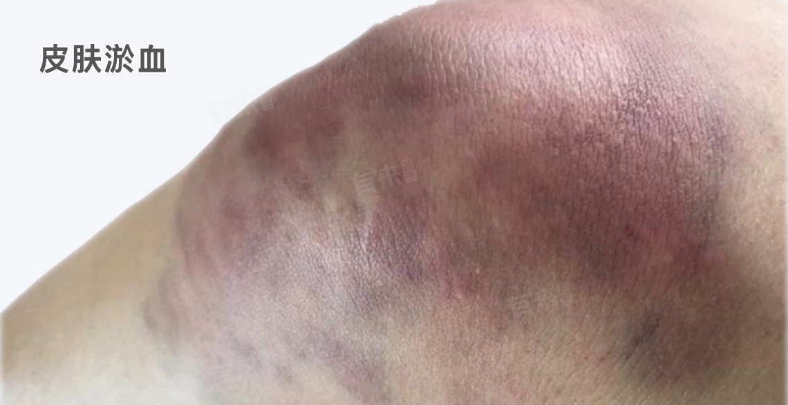 淤血通常表现为皮肤上的紫色或蓝色斑块,这些斑块可能会随着时间的推移而逐渐扩散和变色。