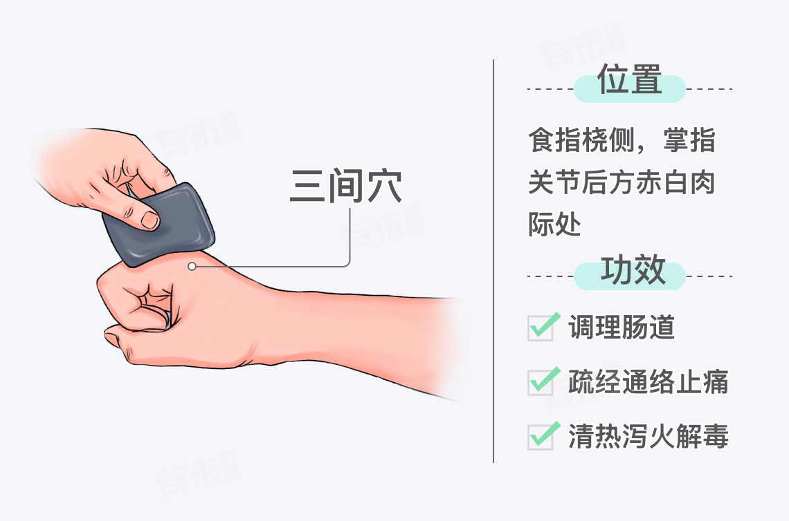 3、清热泻火解毒:当外感风热之邪引发发热、咽喉肿痛、牙痛等上火症状时,刺激三间穴可宣泄体内热邪清热解毒,减轻症状,缓解不适,使热邪散去。