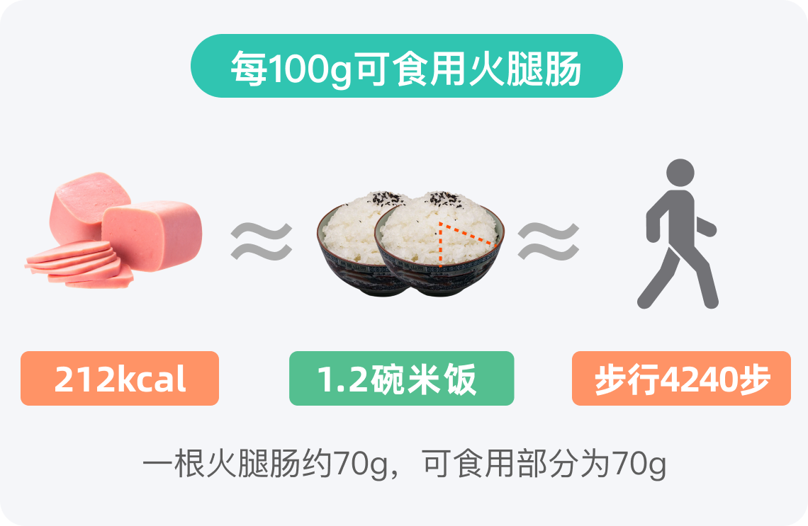 每100g火腿肠的热量大约为212kcal,这是一个平均值,具体数值可能因品牌、制作工艺和成分的不同而有所差异。若一根火腿肠的可食用部分约为70g,则其热量大约为148kcal。这一热量相当于5/6碗米饭的热量,热量约占一餐总热量的20%-30%。