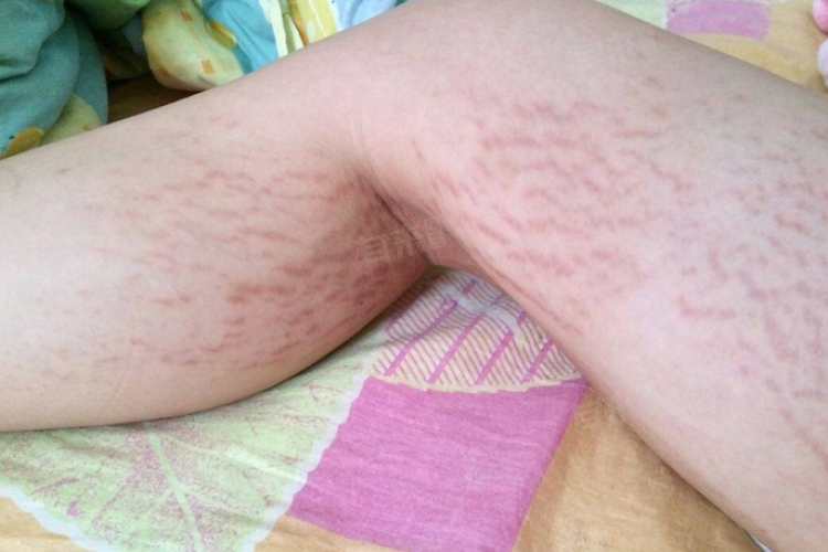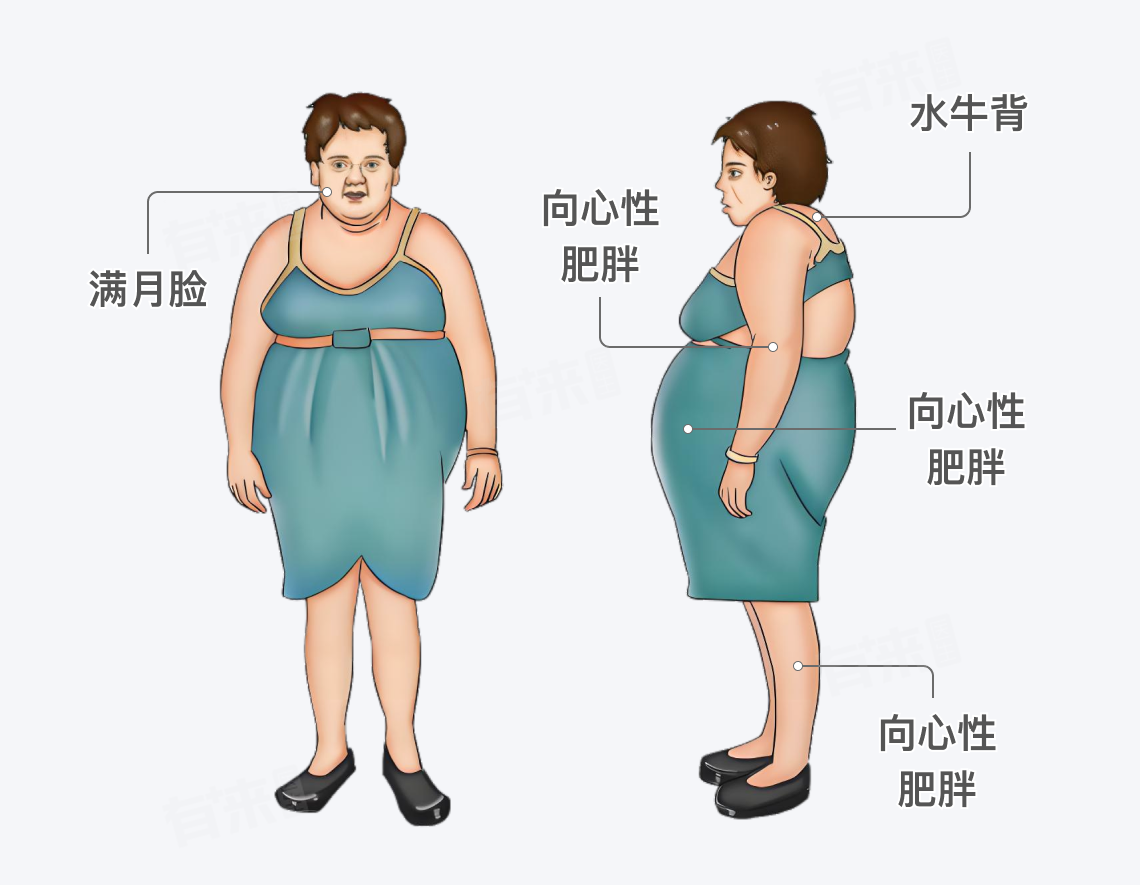 2、皮肤改变:皮肤会变薄,容易出现紫纹,主要分布在腹部、大腿内外侧、臀部等部位,这些紫纹呈宽而两端细的形态,颜色为紫红色,是由于皮下脂肪快速堆积,皮肤弹力纤维断裂所致。