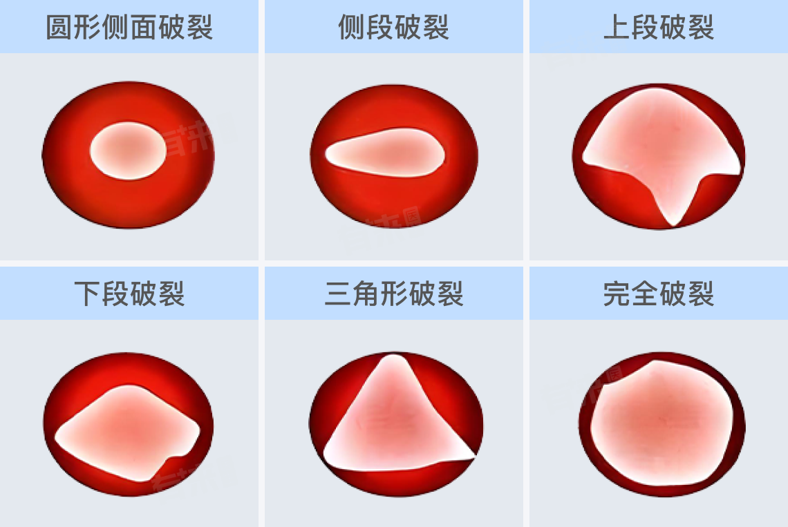 处女膜的破裂形态多样,包括圆形侧面破裂、侧段破裂、上段破裂、下段破裂、三角形破裂及完全破裂。每种破裂类型都呈现出独特的边缘形状和中央孔的变化,对处女膜的整体结构和外观产生不同程度的影响。