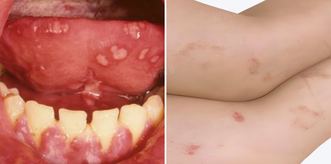 - 黏膜损伤:患者可能出现口腔溃疡,疼痛明显,可反复发生。口腔溃疡的大小、形状不一,有的是单个,有的是多个散在分布。此外,还可能出现皮肤黏膜的瘀点、瘀斑。