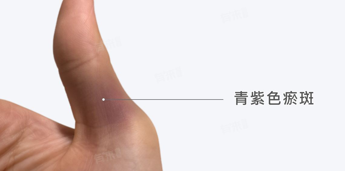 随着血液在皮下组织中的扩散,骨折部位周围可能会出现青紫色的瘀斑。