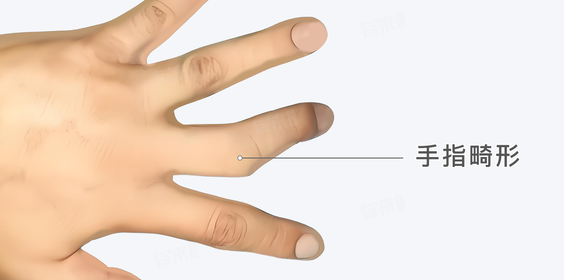 畸形可能表现为手指头的弯曲、成角或异常隆起等形态。