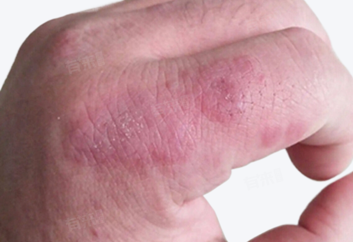 - 外观特征:这种红斑与冻疮相似,表现为紫红色的斑丘疹或斑块,边界不清,可伴有水肿、瘙痒或疼痛。红斑的表面可能会出现破溃、结痂等情况,尤其在寒冷季节,症状可能会加重。