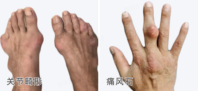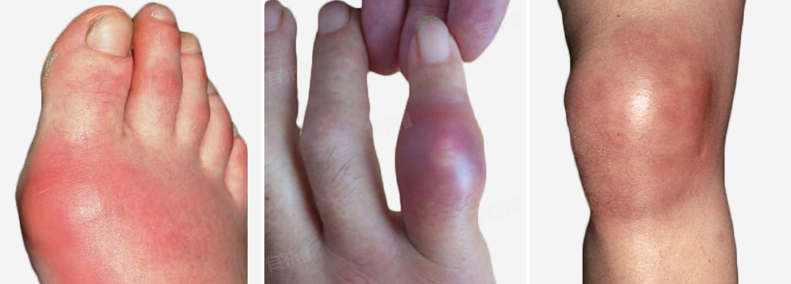 2、痛风石形成:尿酸盐沉积形成硬结,即痛风石,其可出现在关节周围、耳轮等部位,质地较硬,一般为黄白色,破溃后易感染。