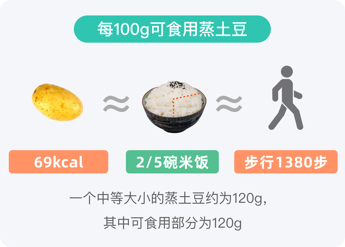 以一个中等大小的蒸土豆(约120g)为例,其热量约为83kcal,大约相当于半碗米饭的热量。这一热量水平在普通成年人一餐中所占比例不算高,但仍需控制摄入量,一般可以作为部分主食来摄入蒸土豆。对于维持日常能量需求而言,既不会造成过重的负担,也能满足一定的饱腹感。