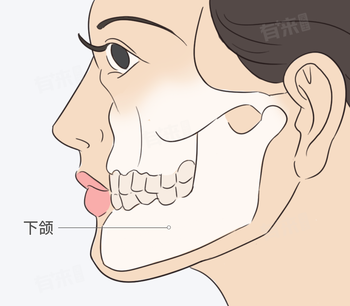 下颌位于面部的下1/3处,是一个可以活动的骨头。