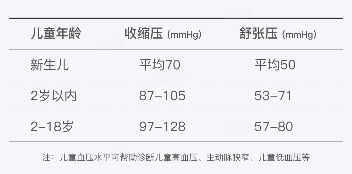随着年龄增长,血压范围逐渐升高,2-18岁儿童血压为收缩压97-128mmHg、舒张压57-80mmHg,在儿童成长过程中生活方式和饮食习惯对血压影响逐渐增大,需密切关注。