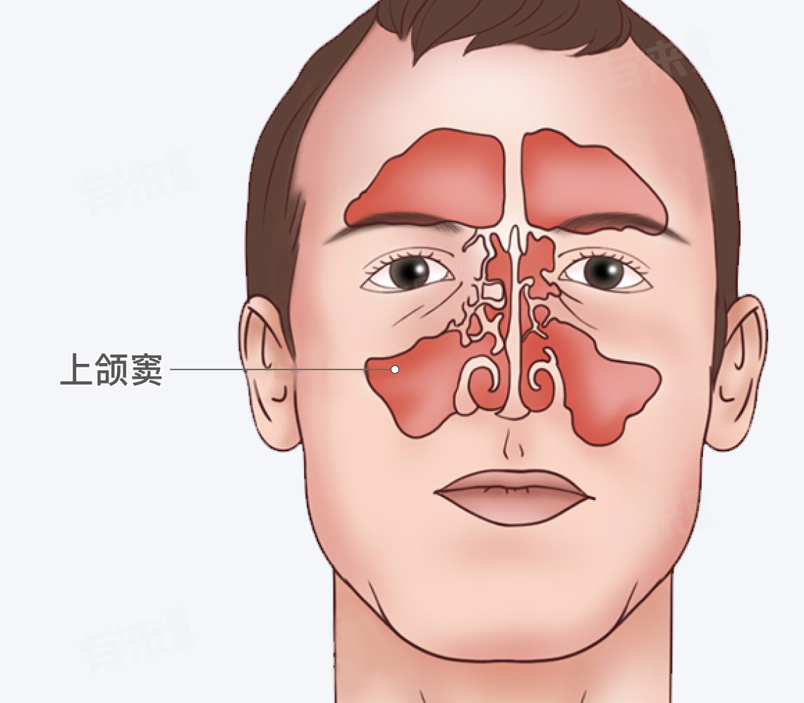 上颌窦是面部骨骼中的一个重要部分,位于鼻子旁边的脸颊区域,由前壁、后外壁、内侧壁、上壁、底壁构成,具有呼吸功能和共鸣功能。