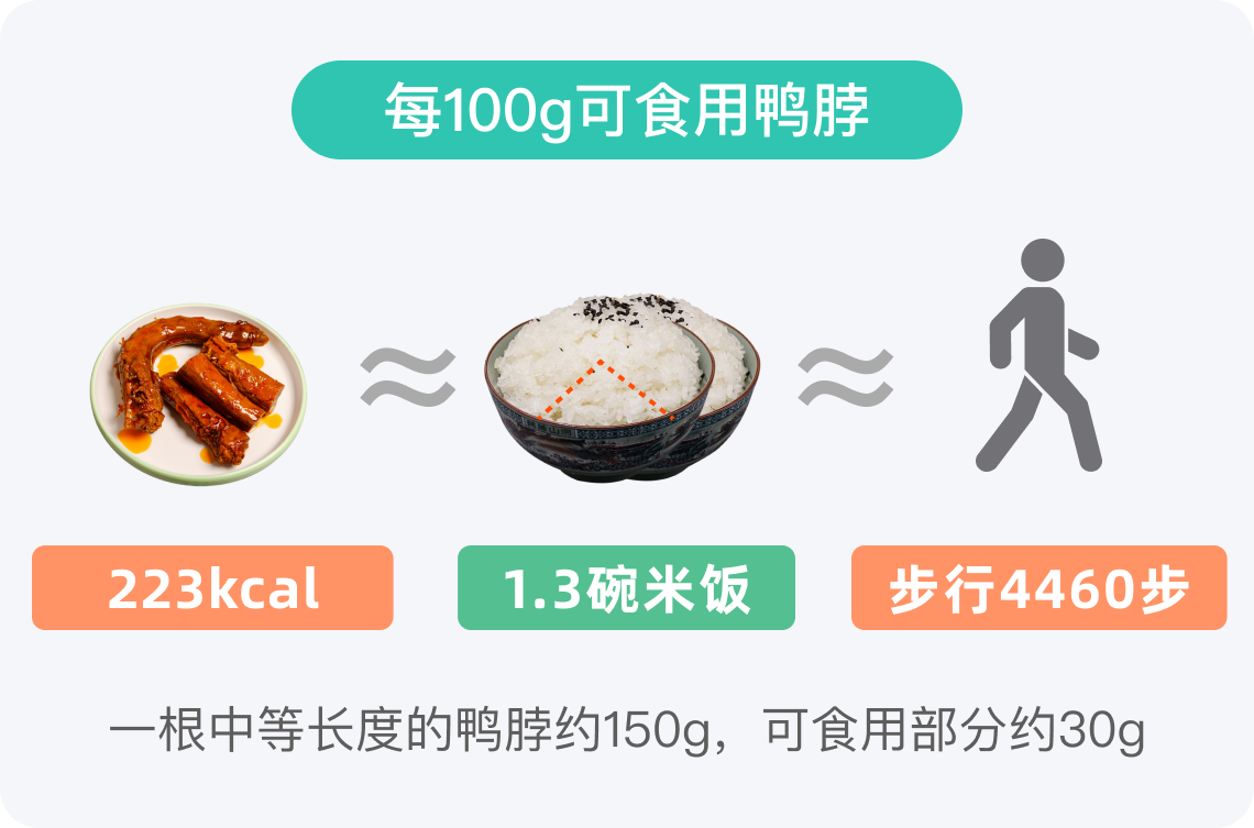 一般而言,一根中等长度的鸭脖重约150g,其中可食用部分大约30g,热量约为67kcal。这个热量相当于1碗米饭热量的3/8。虽然这一热量水平在成年人的日常饮食中所占比例不高,但仍需控制摄入量,以免因为无意的热量积累而导致体重增加。