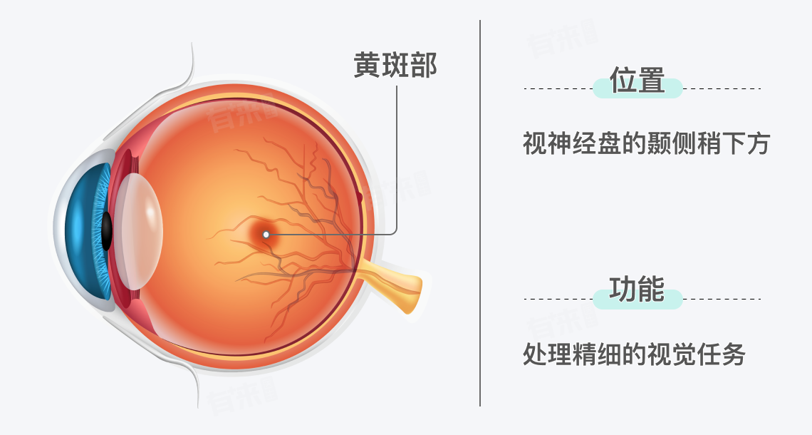 黄斑位于眼睛的后部,更具体地说,是在视网膜上一个特定的区域。