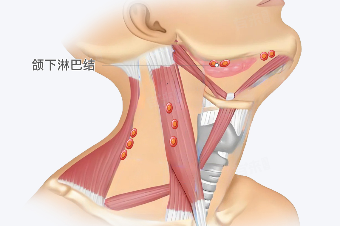 2、下唇及舌尖:下唇中部和舌尖部的淋巴液也引流至颌下淋巴结,例如,下唇因外伤感染或者舌尖出现溃疡等病变时,相关的病原体和炎性物质会被输送到颌下淋巴结,可能引起颌下淋巴结的免疫反应,出现肿大、压痛等情况。