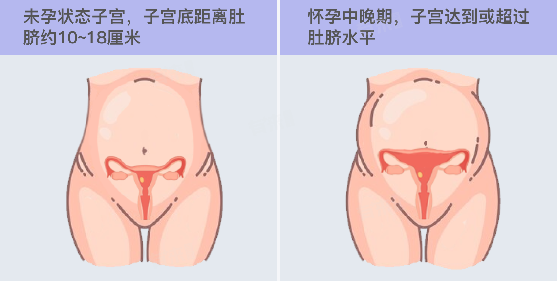 2、怀孕状态:怀孕晚期时,子宫的相对位置变化较大,此时子宫会上升,可能达到或超过肚脐水平。