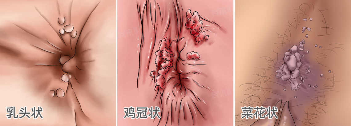 随着病情的发展,丘疹可逐渐融合形成乳头状、鸡冠状、菜花状等形状的赘生物。赘生物表面湿润、柔软,顶端尖锐,边缘角化,呈白色、红色或乌灰色,触碰时容易出血。