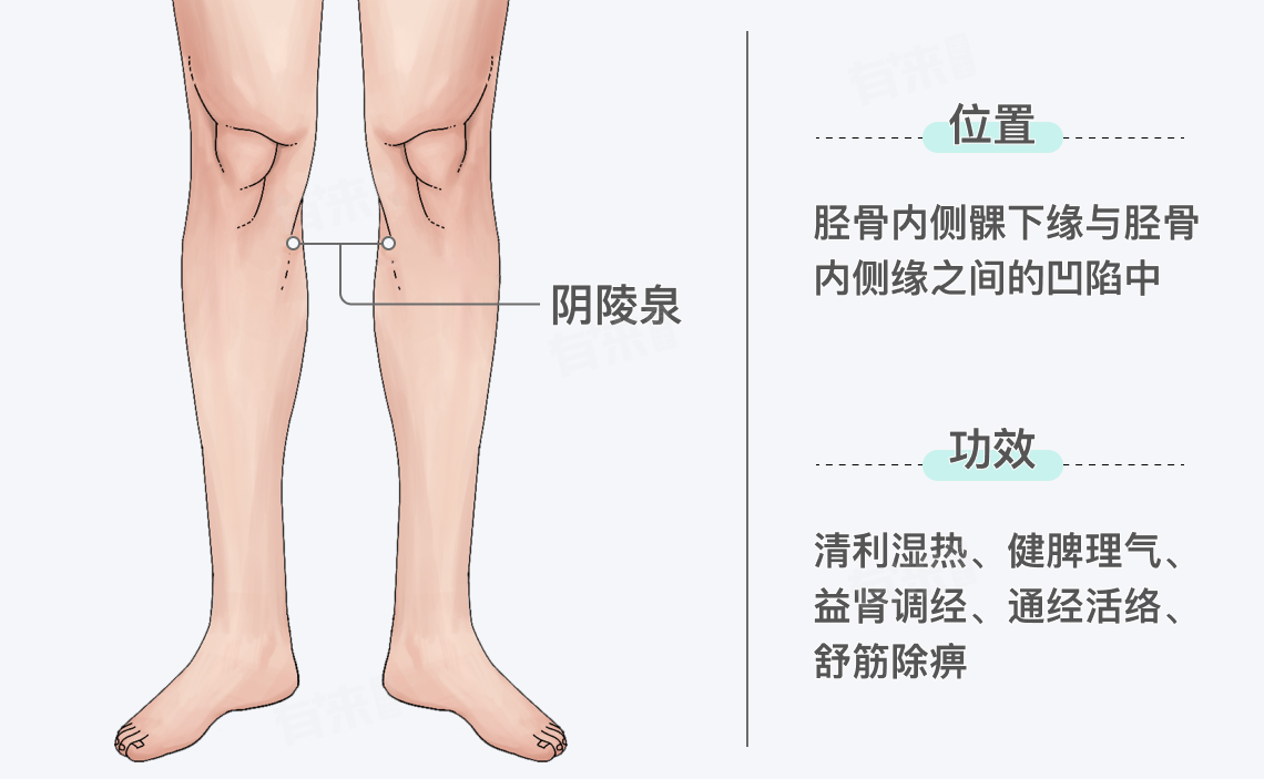 1、清利湿热:阴陵泉具有清利湿热的功效,对于湿热下注引起的下身不适,如阴痛、带下等症状,有良好的缓解作用,这一功效使得阴陵泉在治疗妇科疾病、泌尿系统感染等方面具有效果。