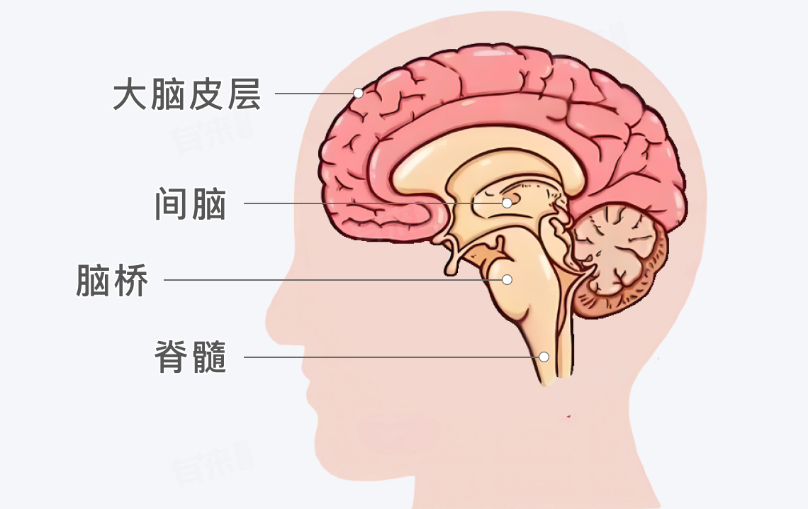 3、间脑:间脑位于大脑半球之间,包含多个与内分泌、自主神经等相关的核团和结构,也与呼吸中枢有一定的联系。