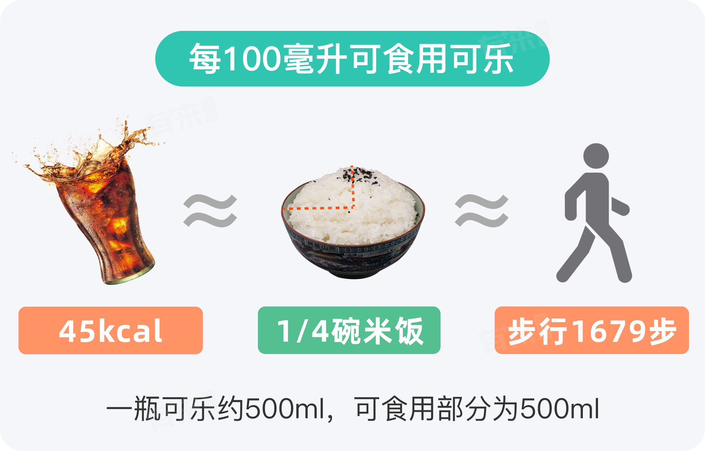 包装类型:罐装、瓶装等不同包装的可乐容量不同,饮用整瓶或整罐的情况下,摄入的热量也就不同。