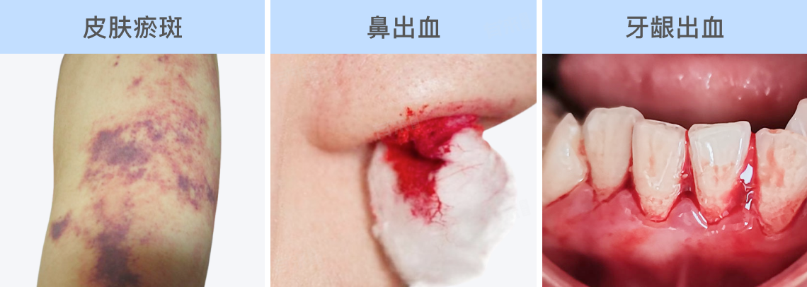 尿毒症会导致凝血因子合成减少、血小板功能异常。患者会出现皮肤大片瘀斑、鼻出血、牙龈出血不止等症状。如果出现颅内出血等严重的内部出血情况,由于脑部重要结构受损,会迅速危及生命。