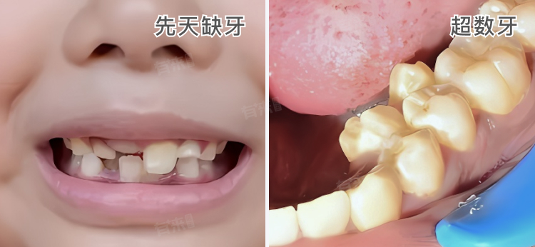 - 示例:先天缺牙(牙齿缺失,少于正常数量)、超数牙(额外的牙齿生长,如前牙区多生牙)。