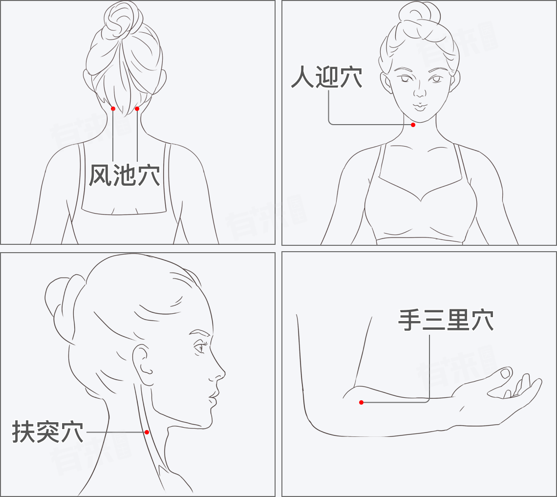 - 按摩方法:用拇指或食指的指腹轻轻按压并打圈按摩此穴,每次持续约1~2分钟,每天可进行多次。