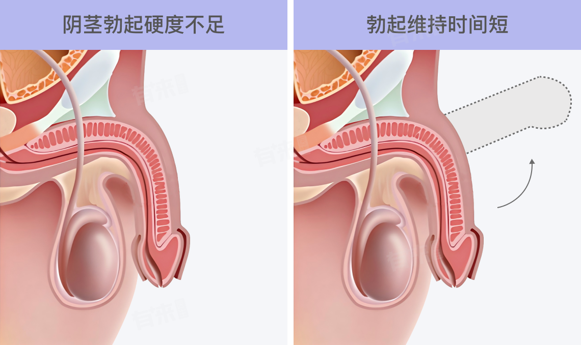 正常情况下,男性阴茎勃起后应具有足够的硬度,能够顺利插入阴道并进行性交动作,而阳痿患者的阴茎勃起硬度较差,虽然有一定的硬度,但缺乏足够的坚挺度,在性交尝试过程中可能会遇到困难,还可能有仅能暂时勃起,或完全无法勃起的情况。