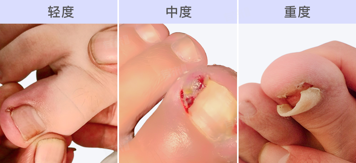 甲沟炎的症状根据严重程度有所不同,轻度时甲沟周围皮肤出现红肿、疼痛,可能伴有轻微灼热感和渗液;中度时红肿范围扩大,疼痛加剧,出现化脓性感染,行走或活动时疼痛加重;重度时则症状更为严重,指甲与甲床完全分离,形成大脓肿,严重影响日常生活和工作,甚至导致行走障碍。