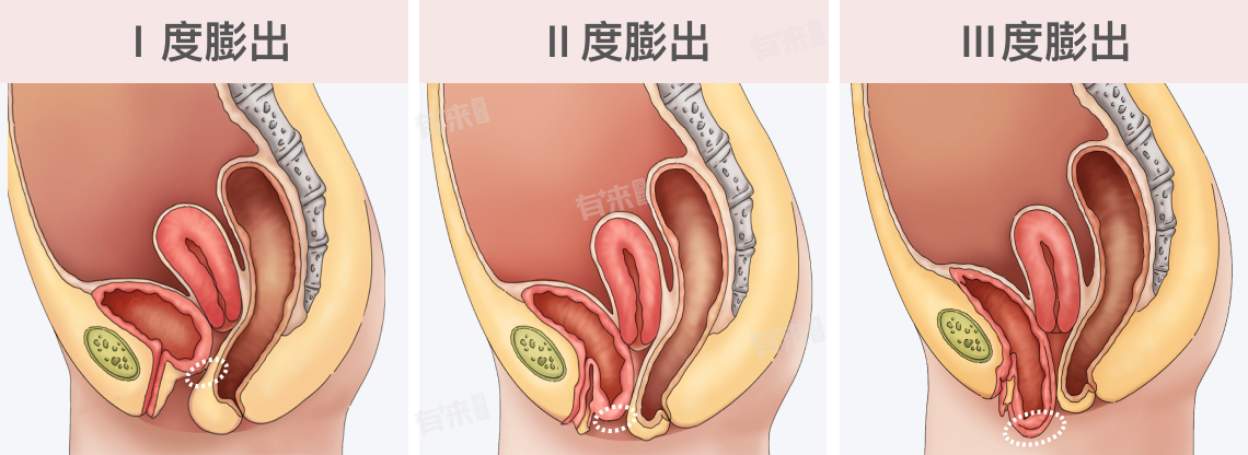 - 阴道前壁膨出已经达到阴道口边缘,部分组织可能会在用力时脱出于阴道口外,但在平卧休息或者用手轻轻推送后,膨出的组织可以回纳到阴道内。