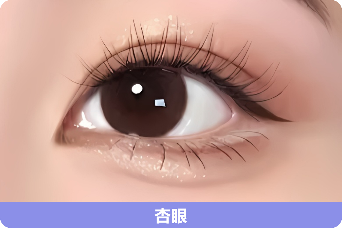 2、杏眼:杏眼虽然通常以双眼皮出现较多,但单眼皮的杏眼同样具有独特的魅力。杏眼的特点是眼形较为圆润,眼尾微微上扬,眼神温柔。