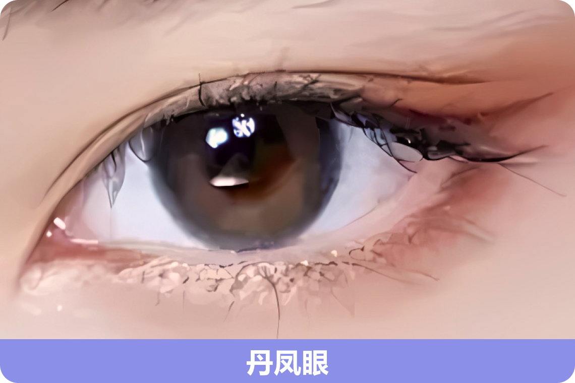 1、丹凤眼:丹凤眼的特点是眼形细长,眼尾上翘,内眼角朝下,外眼角朝上,眼型类似于平行四边形。