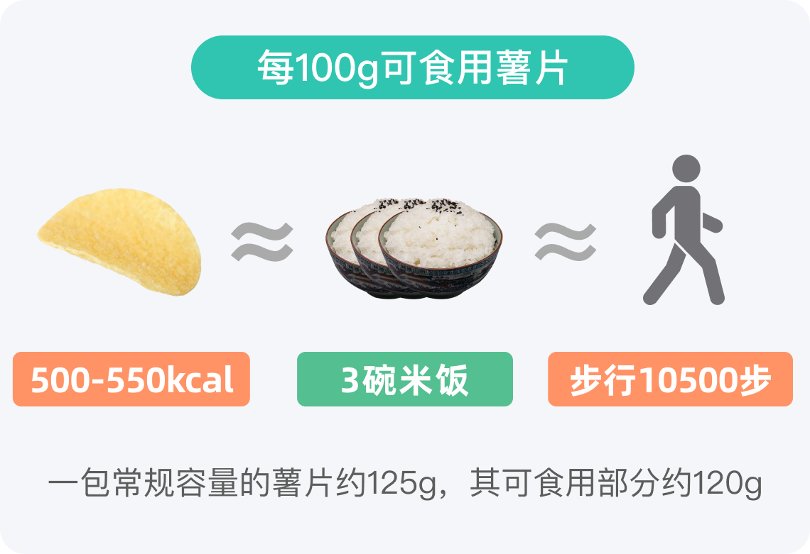 由于薯片热量较高,建议每次食用需要严格控制摄入量,以免热量摄入过多。