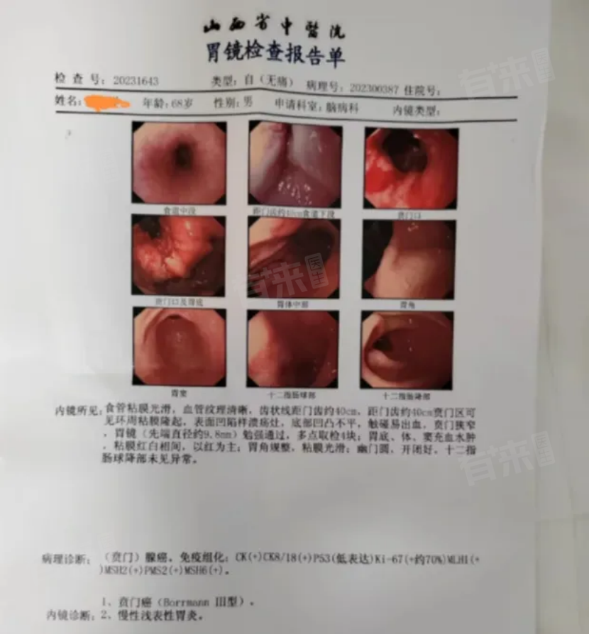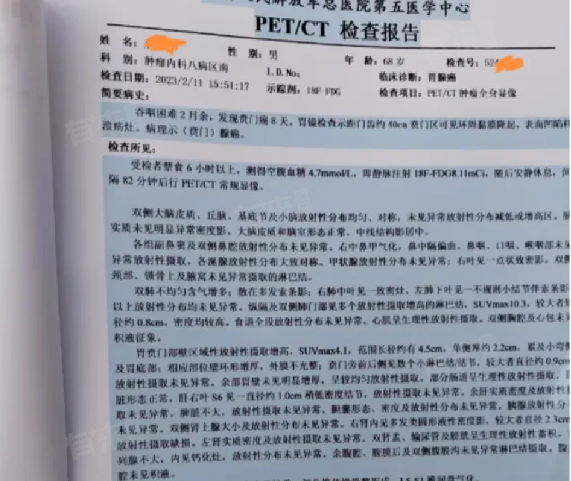 等了一周,去太原取上胃镜报告和病理切片报告,确诊为胃癌(贲门腺癌),我们决定去北京301(中国人民解放军总医院)就诊,争取到国内更好的医疗资源。