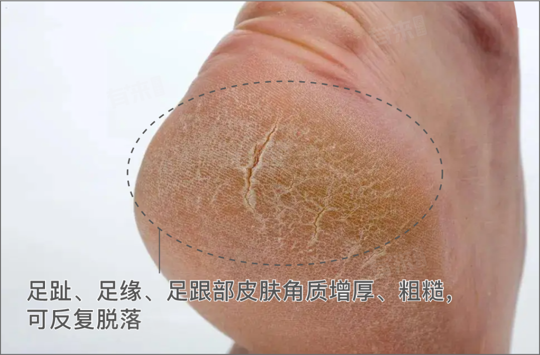 瘙痒感是指双脚皮肤瘙痒难忍,通常伴有干燥、脱皮等症状,有时伴随水疱,患者自述经常会痒到挠破皮肤出现血痕,夜间症状加重。