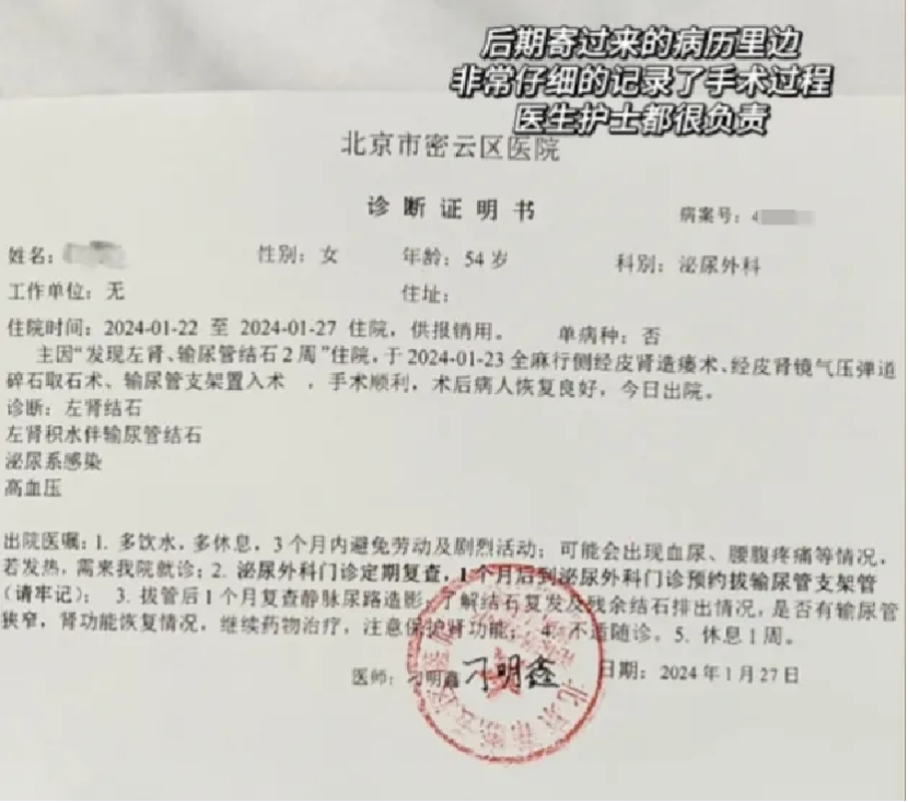 肾结石取出来后,医生说最少十年了,之前她总腰疼,没想到是肾结石。