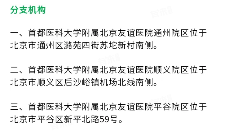 除了在西城区的总院,北京友谊医院还在北京其他三个区有分支机构。