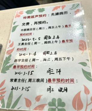 因为特需B超排期比较长,约特需B超的话可以先确定好B超时间,再约其他检查,保证一天做完所有检查。