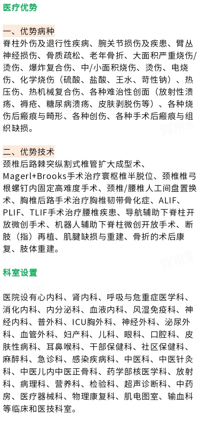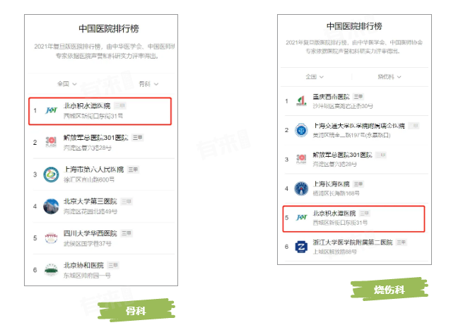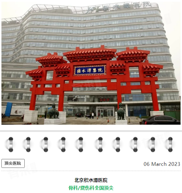 北京积水潭医院可以说是骨科疾病的顶流。积水潭是全国骨科、烧伤科医生的黄埔军校,全国各地的医生都来进修。此外,积水潭的急诊为骨科定制,三天内的骨折走绿色通道,都能及时接诊,值班医生还是副主任以上级别。