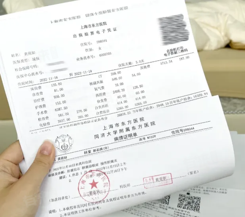 上海东方医院保胆取石手术记录:住院3天,自费后5000多,手术有哪些流程?