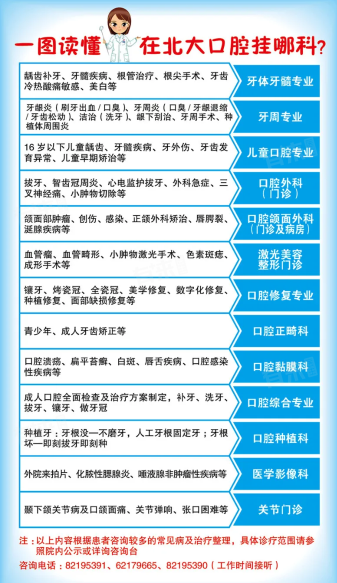 不知道如何选择口腔医院的科室挂号?请参考下图