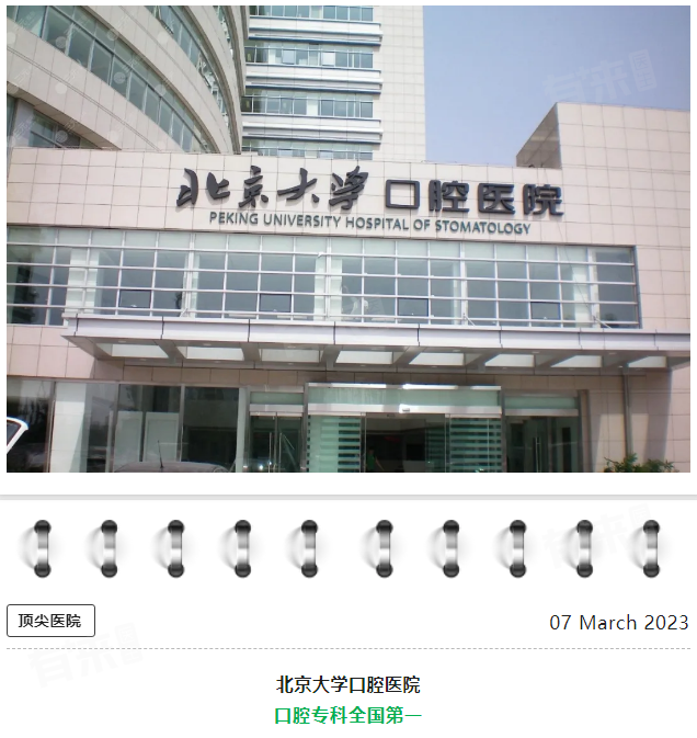 北京大学口腔医院(北京大学口腔医学院、北京大学口腔医学研究所)位于始建于1941年,是一所三级甲等专科医院,是北京市医保和新农合定点医院。