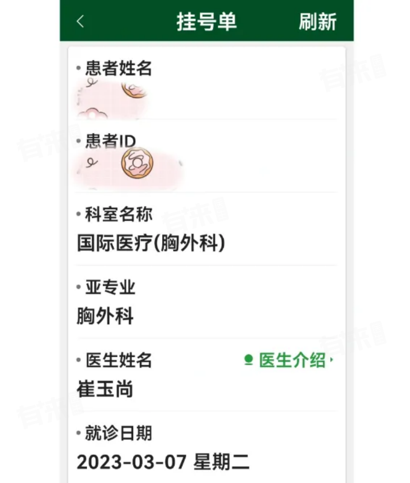 感觉是协和胸外科最牛的专家,看片非常认真专业,不用看电子版也能说得非常准确,他说可以观察也可以手术,自己选,所以在崔医生处开了住院单,也是后期重点考虑的手术医生。
