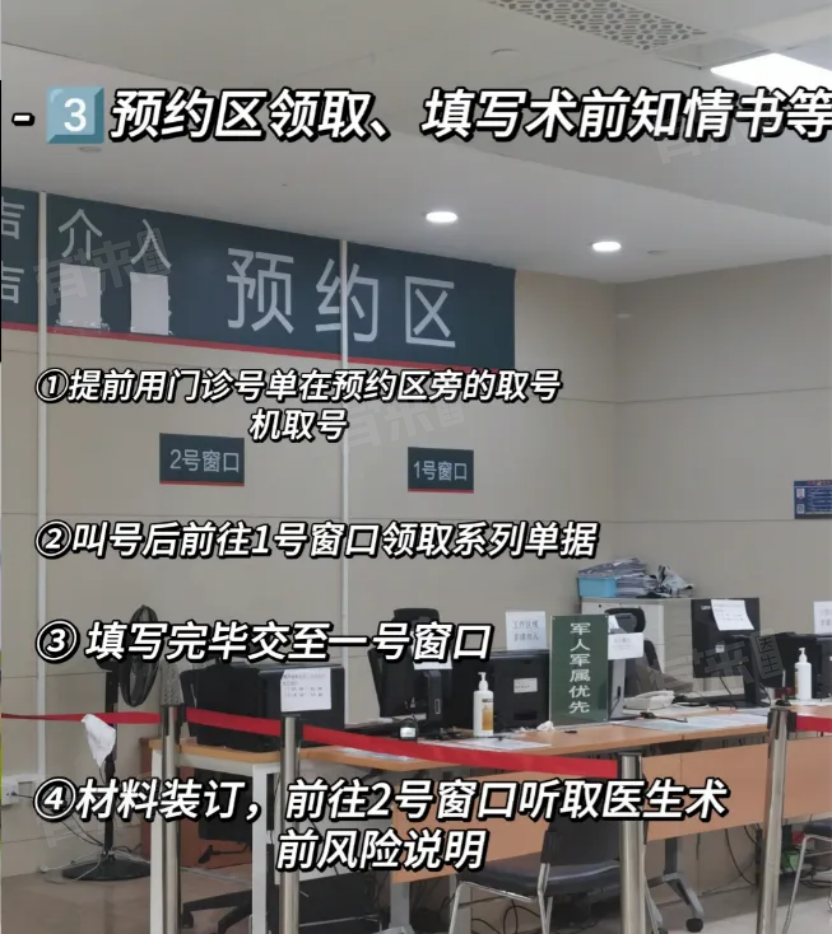 ⑥确认手术后,前往超声手术区医生办公室进行手术具体日期的预约