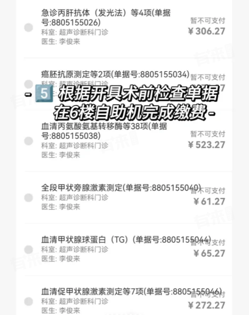 ⑦手术日期预约完成,医生将开出一些列术前检查单,检查单开出后可以选择立即缴费也可在术前检验当天缴费。