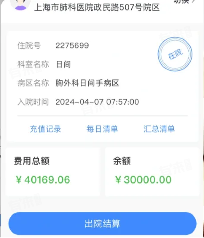 4月7日一大早起床缴费手术。
