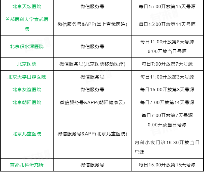 北京市医疗机构在每日7 时、11时、15时,由医院自主选择之后进行放号。