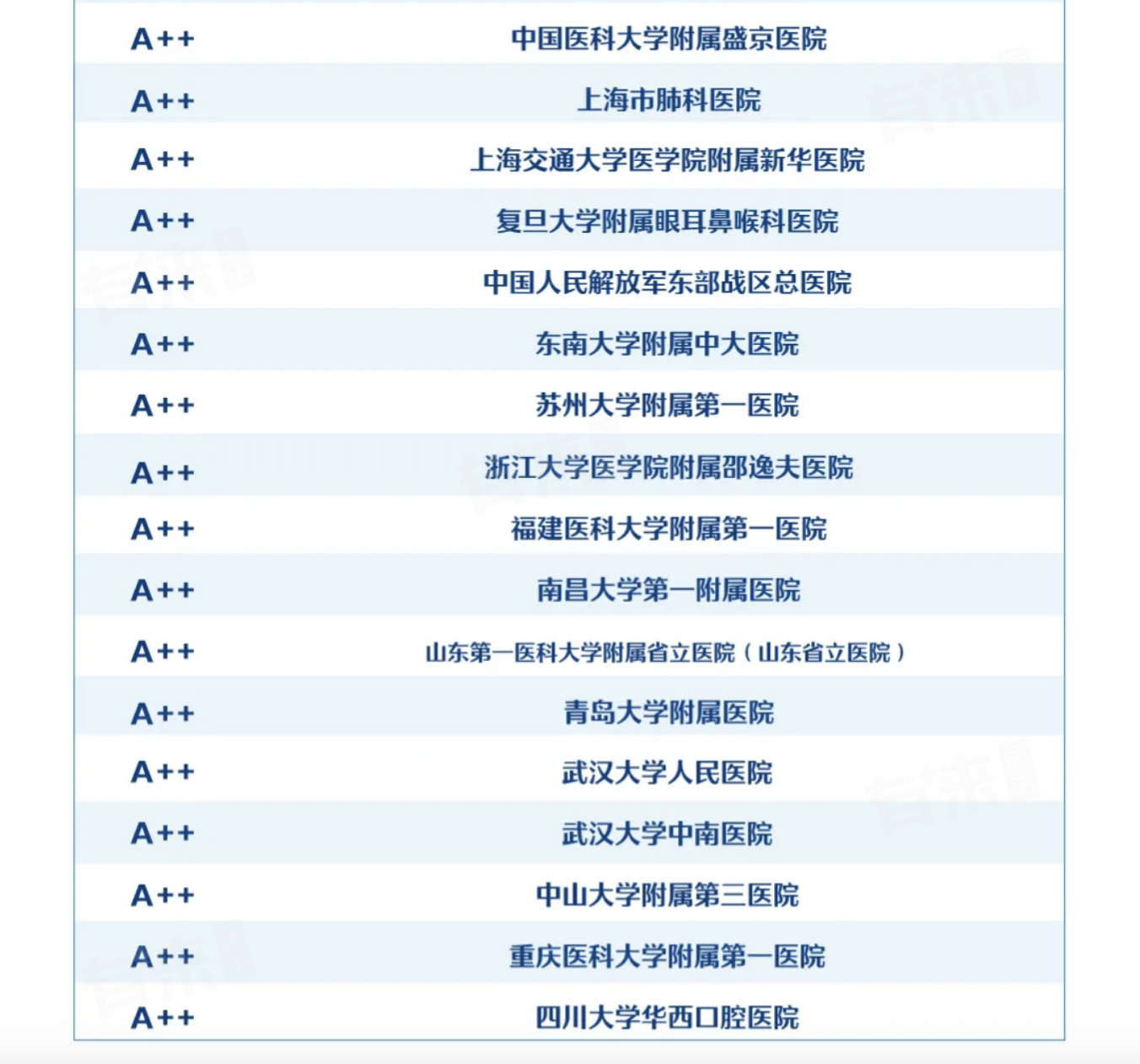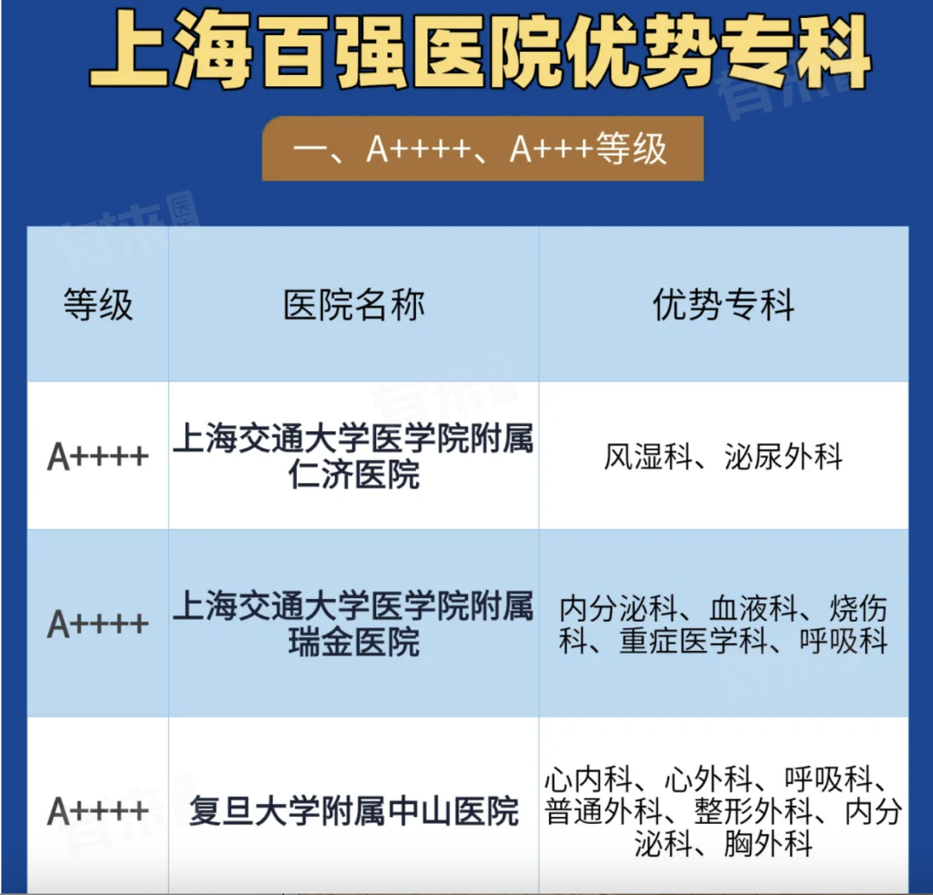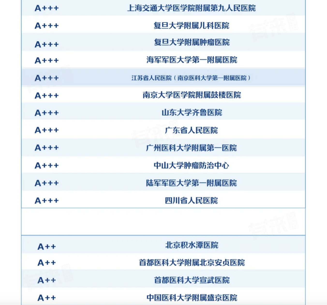 2、上海被评为A++++的医院有四家,分别为