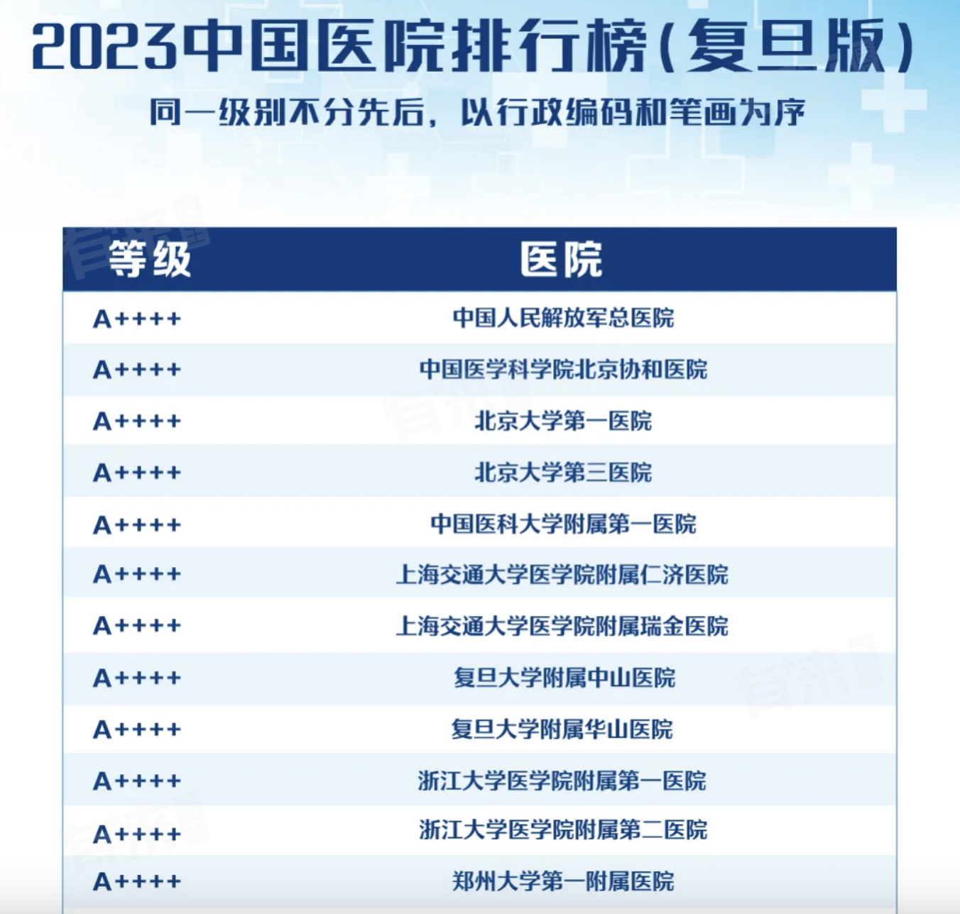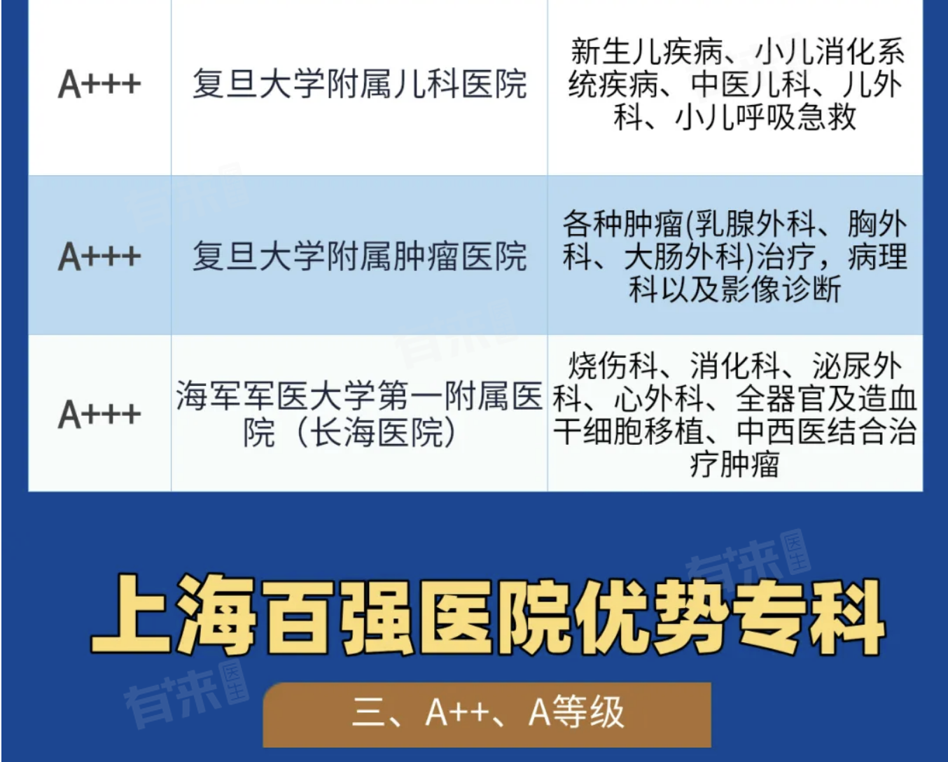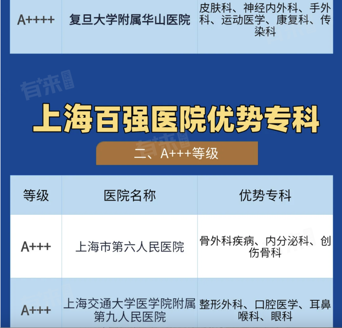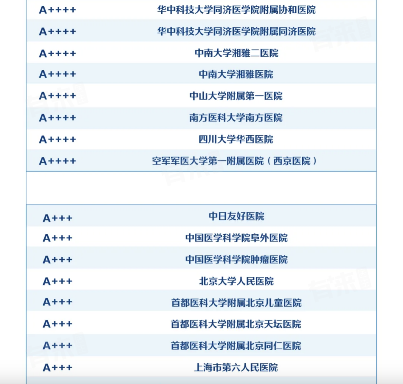 2、上海被评为A++++的医院有四家,分别为