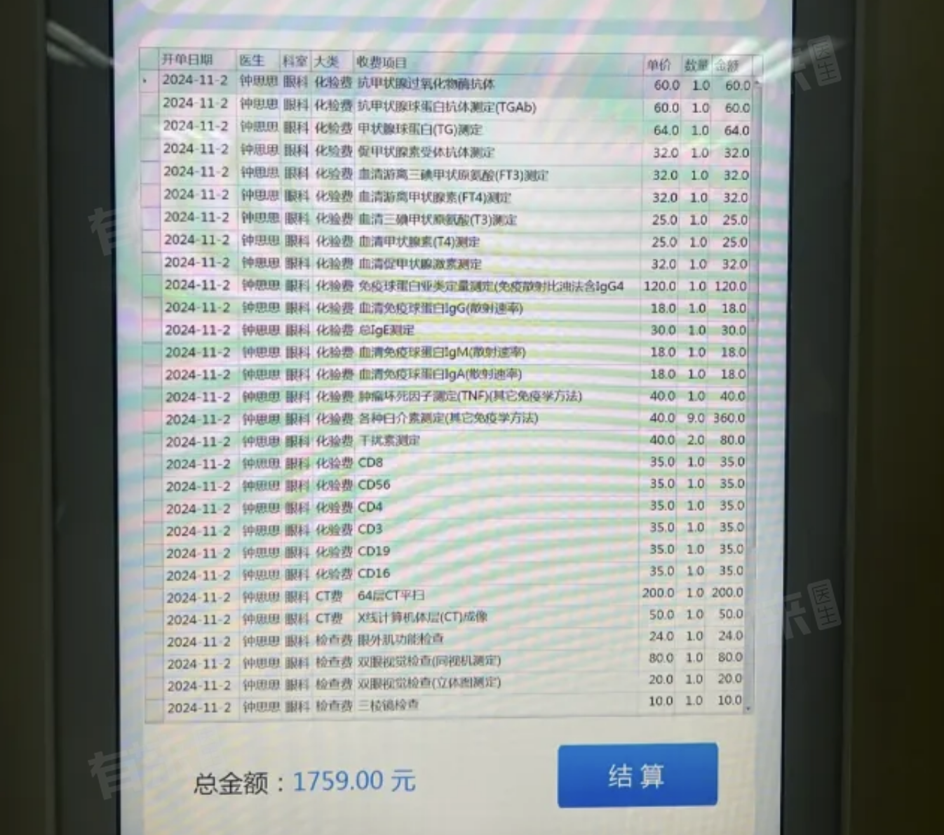 检查过程:先去2楼预约MRI取号,然后去1楼抽血,接着回到11楼做眼科检查,每个检查在不同的房间,要同时关注好几个房间叫号防止过号。